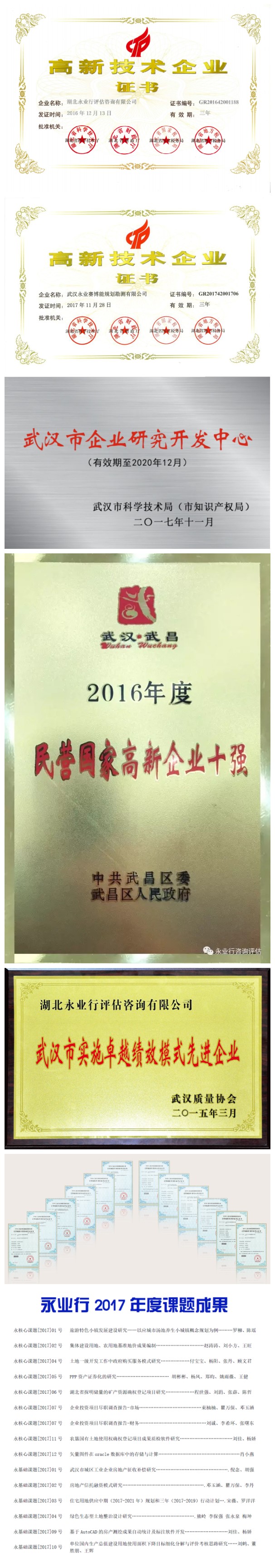 永业行部分创新荣誉及成果展示