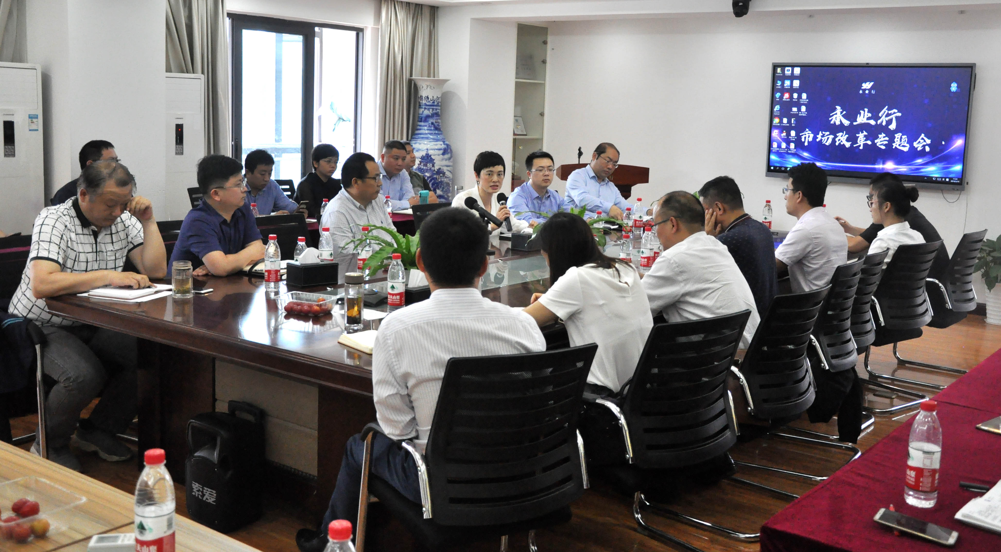 董事长兼总裁潘世炳,执行总裁王琴,副总裁雷小军、刘晓峰等高管,各业务部门负责人、市场总监、市场监督管理委员会全员、职能部门负责人参加会议,咨询业务总监文云波、国土业务总监吴学锋分别主持会议。