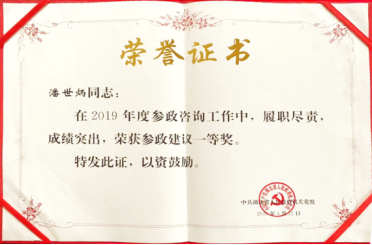 潘世炳荣获先进参事、参政建议一等奖