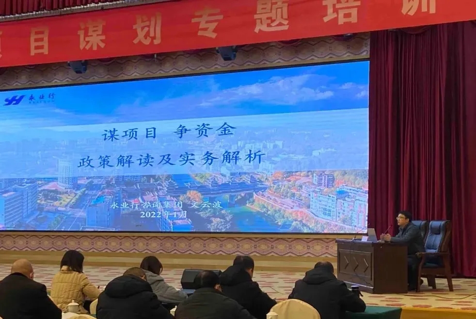 2022年1月13日,恩施州住房和城乡建设局组织召开“全州谋项目争资金专题培训会”,永业行副总裁文云波受邀参加,并以“谋项目争资金政策解读及实务解析”为主题开展培训交流。