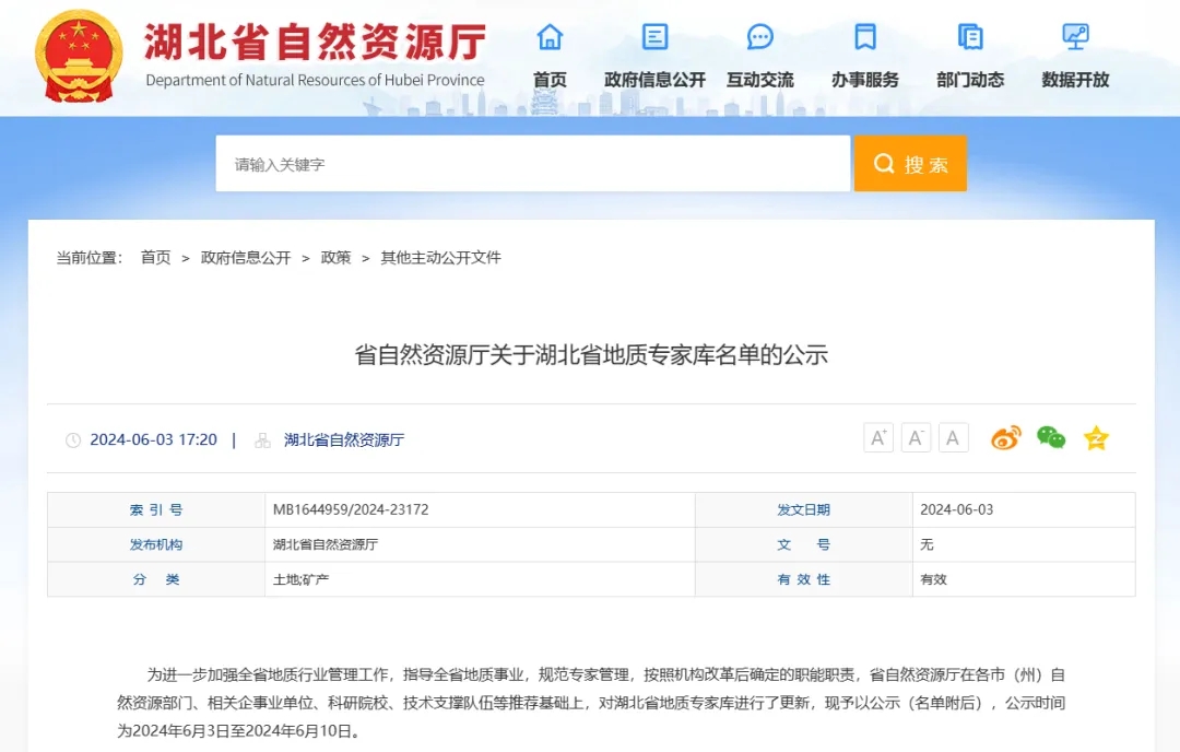 近日,湖北省自然资源厅公布湖北省地质专家库入库专家名单,永业行地矿咨询技术总监程世强,测绘地理信息部副总监徐骏平,地质环境部副总监朱丰、副总经理程泽华,技术经理郭雪峰等5人成功入选。