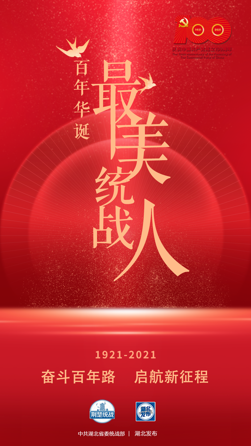 2021年是中国共产党百年华诞。胸怀千秋伟业,恰是百年风华。站在“两个一百年”的历史交汇点上,湖北各级统战部门和广大统战成员坚持以习近平新时代中国特色社会主义思想为指导,深入学习贯彻党的十九届五中全会精神和省委十一届七次、八次全会精神,全面贯彻习近平总书记关于加强和改进统一战线工作的重要思想,认真落实《中国共产党统一战线工作条例》及我省实施办法,着力在贯彻新发展理念、服务新发展格局、推进优化营商环境、助力基层社会治理等方面凝心聚力、同心同德、笃定前行,为湖北加快“建成支点、走在前列、谱写新篇”贡献统战智慧和力量。