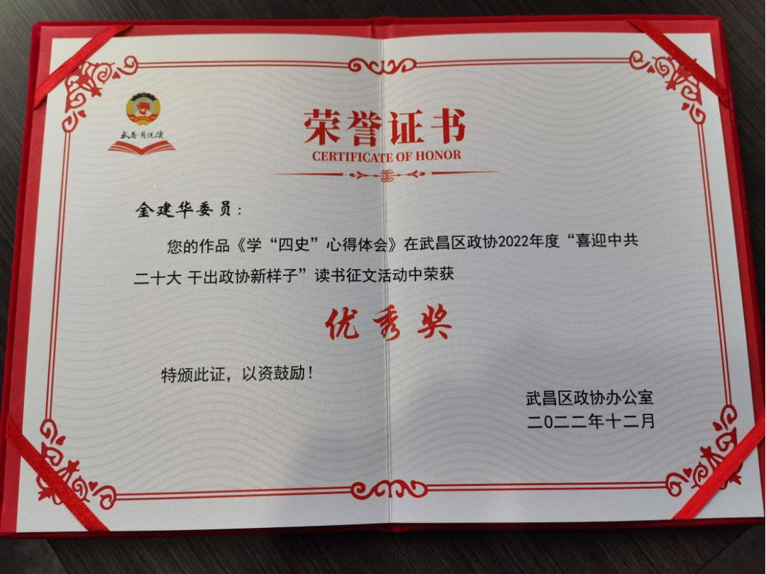 会议听取并审议了审议通过《政协武昌区第十五届委员会第二次会议关于常务委员会工作报告的决议》《政协武昌区第十五届委员会第二次会议关于常务委员会提案工作情况报告的决议》《政协武昌区第十五届委员会第二次会议政治决议》;选举产生了政协武昌区第十五届委员会副主席、秘书长和常务委员;对区政协十五届一次会议《关于加快培育和壮大我区战略性新兴产业,打造科创强区的建议》《关于加快推进武昌音乐谷建设,助推古城文化复兴的建议》2件建议案办理情况满意度进行测评,表决确立《关于推进国家气候投融资试点建设,打造武昌现代“金融之城”的建议》《关于推进“共同缔造”示范社区建设,构建基层社会治理共同体的建议》为区政协十五届二次会议大会建议案。会议还表彰了先进界别组(街道政协联络委)、优秀大会发言单位、优秀政协委员等年度先进集体和个人。金建华委员所撰写的《学“四史”心得体会》在武昌区政协2022年度“喜迎中共二十大 干出政协新样子”读书征文活动中荣获“优秀奖”。