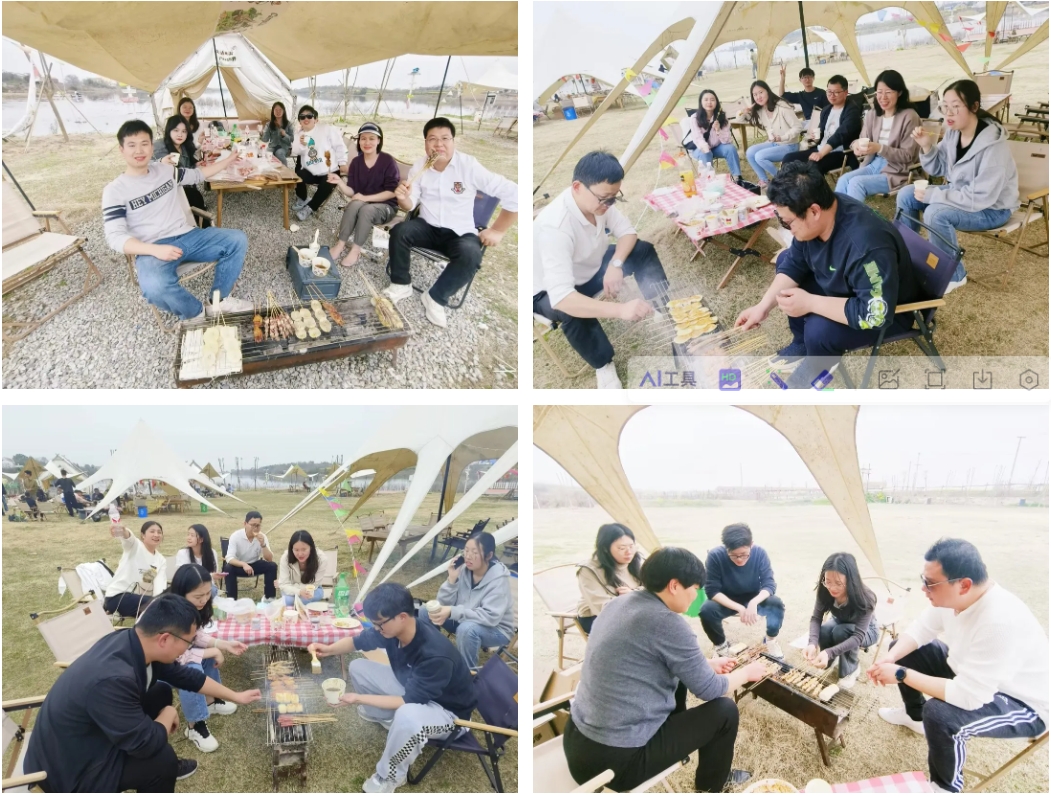 春日“趣”烧烤,不负好“食”光。大家在幸福水库旁的露营地近距离欣赏着周边的美景,同时畅享围炉烧烤。大家围坐在一起,一边品尝着美味的烧烤,一边畅谈工作与生活,不同部门之间的员工们有了更多的了解与认识,也增进了彼此之间的友谊。
