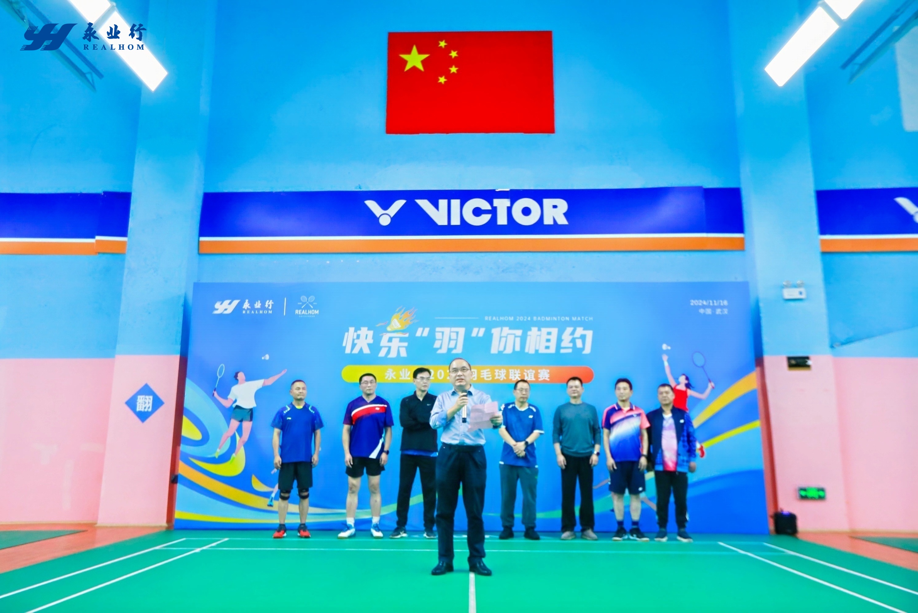 武昌区人大常委会主任胡太荣,区委常委、区政法委书记黄丰宙 ,区政协副主席陈烈,永业行董事长潘世炳等出席开幕式并讲话。16支激情洋溢、活力满满、火力全开的代表队,160余名羽毛球爱好者欢乐聚首,互搓球技、强身健体,共叙情谊、凝聚力量。