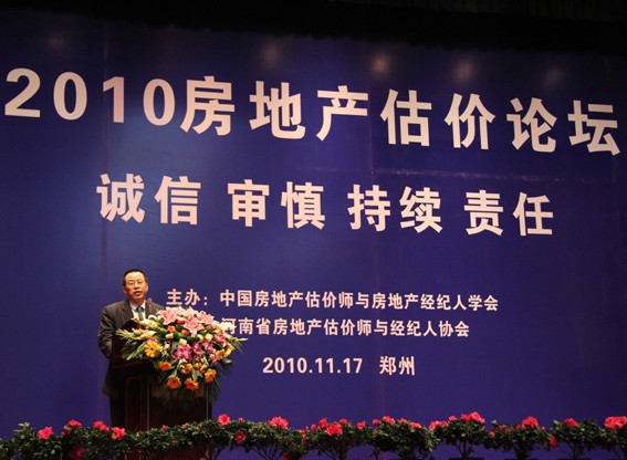 11月17日,由中国房地产估价师和房地产经纪人学会和河南省房地产估价师与经纪人协会主办的2010房地产估价论坛在河南省郑州市举行。永业行总裁潘世炳应邀在论坛上发表题目为《房地产评估机构多元化战略》的主题演讲。